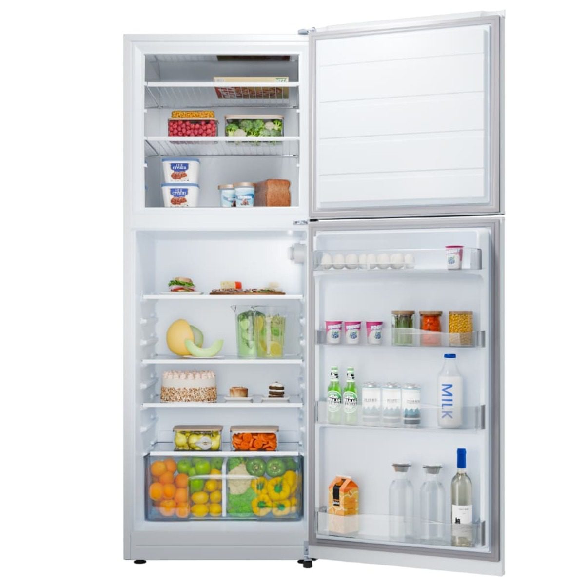 Las nuevas heladeras Drean cuentan con estantes de vidrio templado regulables, permitiendo almacenar botellas, jarras de vidrio, y todo tipo de contenedores de distintos materiales y altura. Equipadas con anaqueles, optimiza el espacio de almacenado.